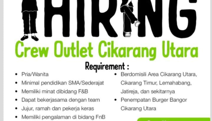 Apakah Anda sedang mencari peluang karir di industri kuliner yang sedang berkembang pesat? Burger Bangor (BGI) kembali membuka kesempatan bagi talenta muda yang dinamis untuk bergabung sebagai Crew Outlet di wilayah Cikarang. Ini adalah kesempatan emas bagi Anda yang ingin mengawali karir di bidang Food & Beverage (F&B) bersama salah satu jaringan burger lokal paling populer di Indonesia.