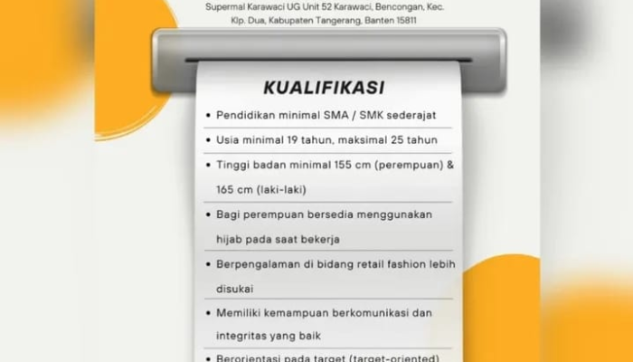 - Pengalaman: Berpengalaman di bidang ritel fashion lebih disukai.