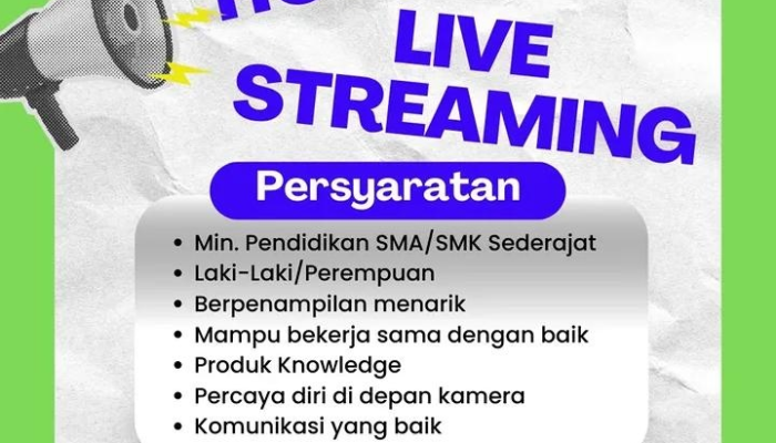 Di era digital tahun 2026 ini, interaksi langsung melalui live streaming menjadi kunci utama dalam memasarkan produk dan jasa secara efektif. Kami mencari talenta muda yang kreatif untuk membantu meningkatkan brand awareness dan penjualan melalui berbagai platform media sosial kami. Jika Anda memiliki penampilan menarik dan mampu menguasai product knowledge dengan cepat, inilah kesempatan Anda untuk bergabung!