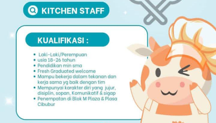 Jika Anda memiliki karakter jujur, sopan, komunikatif, sigap, dan siap bekerja dalam tim yang dinamis, segera siapkan diri Anda! Manfaatkan peluang Karir Server dan Kitchen Staff 2025 ini. Baca detail lengkap persyaratan dan jadwal walk interview di bawah ini, dan pastikan Anda menjadi bagian dari tim sukses Zubu!