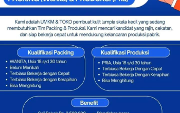 Lokasi Kerja: Hubungi kontak tersedia untuk detail lokasi kantor. Deadline: Segera (Lowongan akan segera ditutup jika posisi sudah terpenuhi).