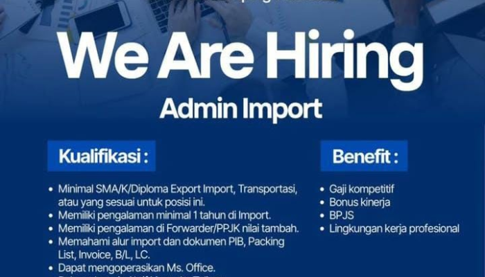 - Pengalaman Kerja: Memiliki pengalaman kerja minimal 1 tahun di bidang Impor.