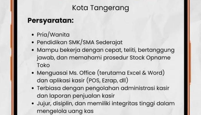 Posisi ini akan ditempatkan di cabang Kota Tangerang, Banten.