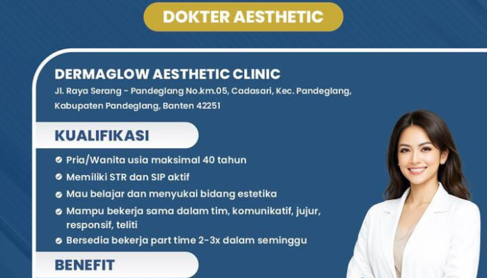 Apakah Anda seorang dokter yang memiliki minat besar di dunia kecantikan dan estetika? Dermaglow Aesthetic Clinic saat ini membuka kesempatan bagi tenaga medis profesional untuk bergabung dan berkembang bersama kami di Pandeglang. Jika Anda memiliki dedikasi tinggi dalam memberikan pelayanan estetika terbaik, kami mengundang Anda untuk mengisi posisi Dokter Aesthetic.