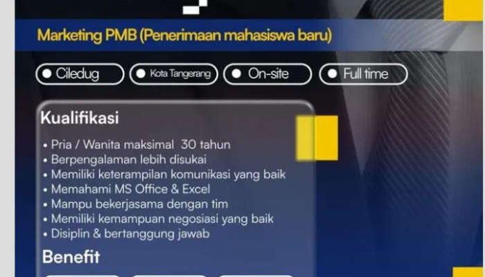 Apakah Anda seorang komunikator ulung yang memiliki minat besar di dunia pendidikan dan pemasaran? Edunesia, perusahaan penyedia solusi marketing terbaik, sedang membuka kesempatan karir bagi Anda untuk bergabung sebagai Marketing PMB (Penerimaan Mahasiswa Baru).