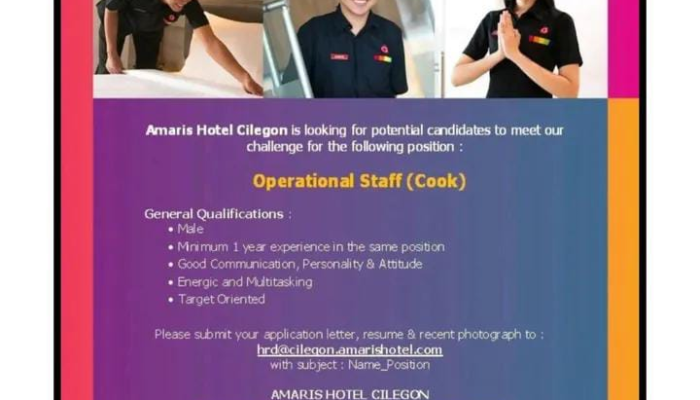 Apakah Anda seorang profesional di bidang kuliner yang sedang mencari tantangan baru di industri perhotelan? Amaris Hotel Cilegon, bagian dari grup Santika Indonesia Hotels & Resorts, sedang membuka kesempatan karir bagi individu berbakat untuk mengisi posisi Operational Staff (Cook). Bergabunglah dengan tim kami dan kembangkan keahlian memasak Anda dalam lingkungan kerja yang dinamis dan berorientasi pada standar kualitas tinggi di tahun 2026 ini.