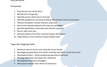 - Pendidikan: Minimal SMA/SMK semua jurusan.