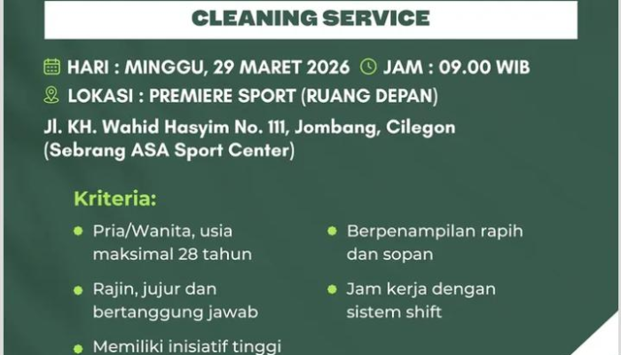 - Cleaning Service: Bertanggung jawab dalam menjaga kebersihan, kerapihan, dan higienitas seluruh area klub demi kenyamanan pelanggan.