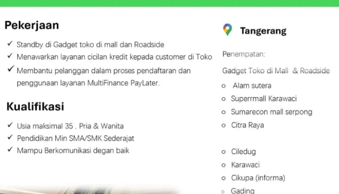 Peluang Karir Sales Promotor Gadget & PayLater Lulusan SMK/SMA di Tangerang